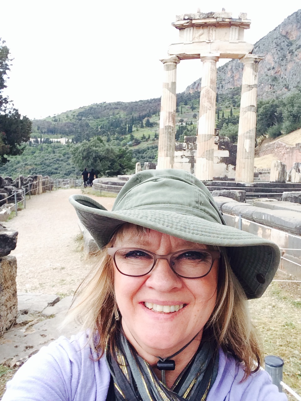 A Greek odyssey followed: a visiting professorship for her 2006-07 sabbatical at Aristotle Thessaloniki University, Greece, one of the largest universities in Europe. Two months in Greece, she completed over 110 watercolors at solo weeklong trips to sites and museums at Delphi, Dion, Athens, Crete and Istanbul. She returned to Greece in 2014 and 2015 for more extensive painting trips and visiting professorships, painting at archeological sites throughout Greece and Crete including Phillippi and Aristotle’s birthplace, Stagira. This work was featured in solo exhibits in 2016, 2017 and 2021.